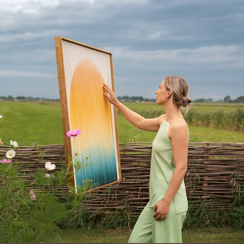 Rianne Aarts is a contemporary fiber artist known for her textile works that explore the poetry of movement, color, light, and texture. Her art transforms natural fibers into compositions that feel at once contemporary and timeless, balancing strength with softness, and structure with emotion.