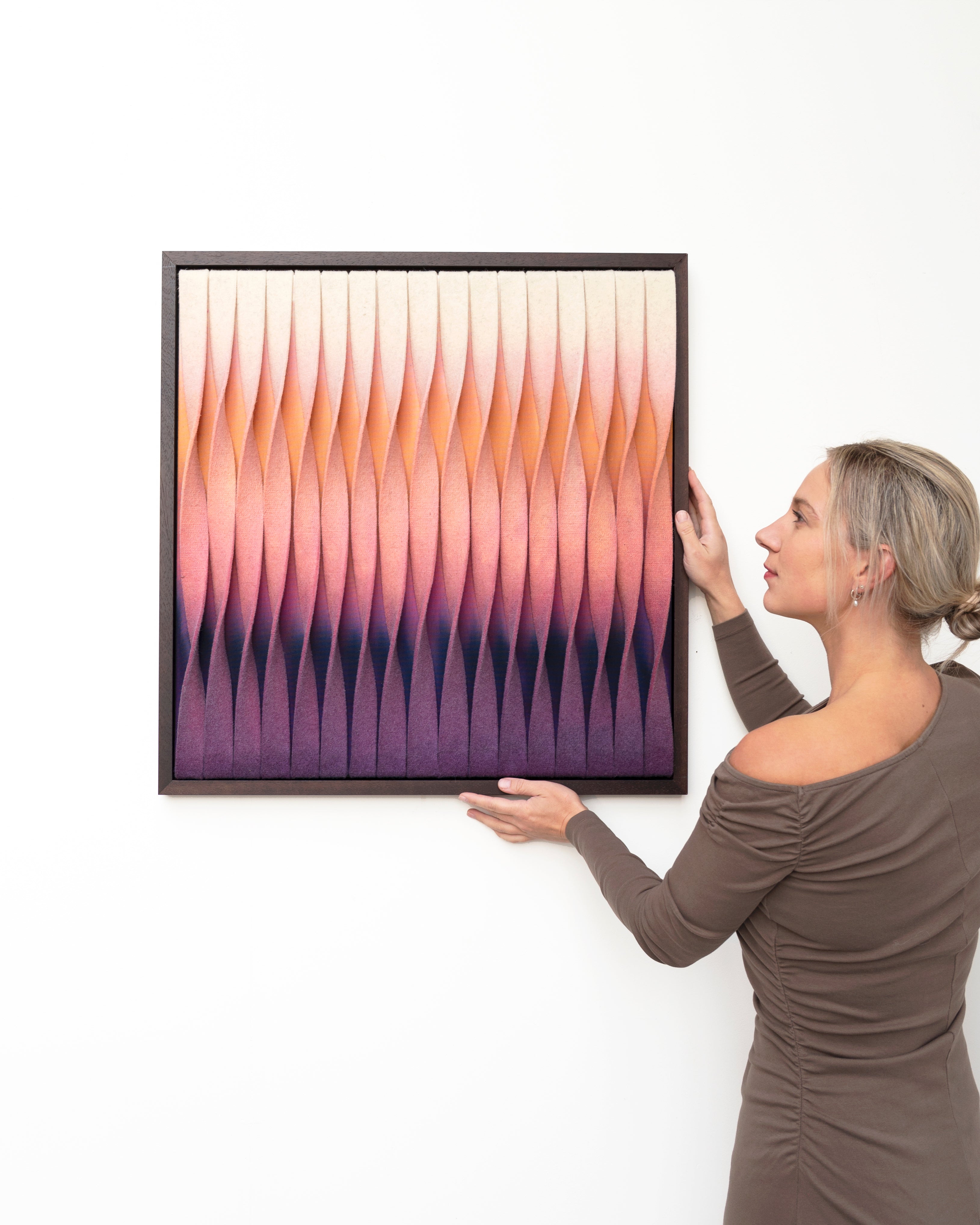 Rianne’s art explores the space between simplicity and emotion, weaving together geometry, texture, and calm. Her hand-knotted wall sculptures combine bohemian purity with refined elegance.
