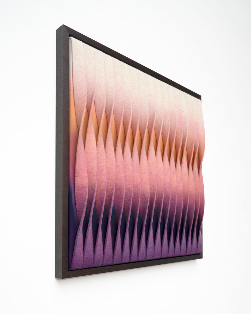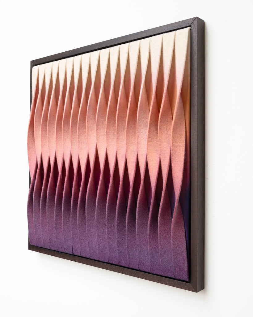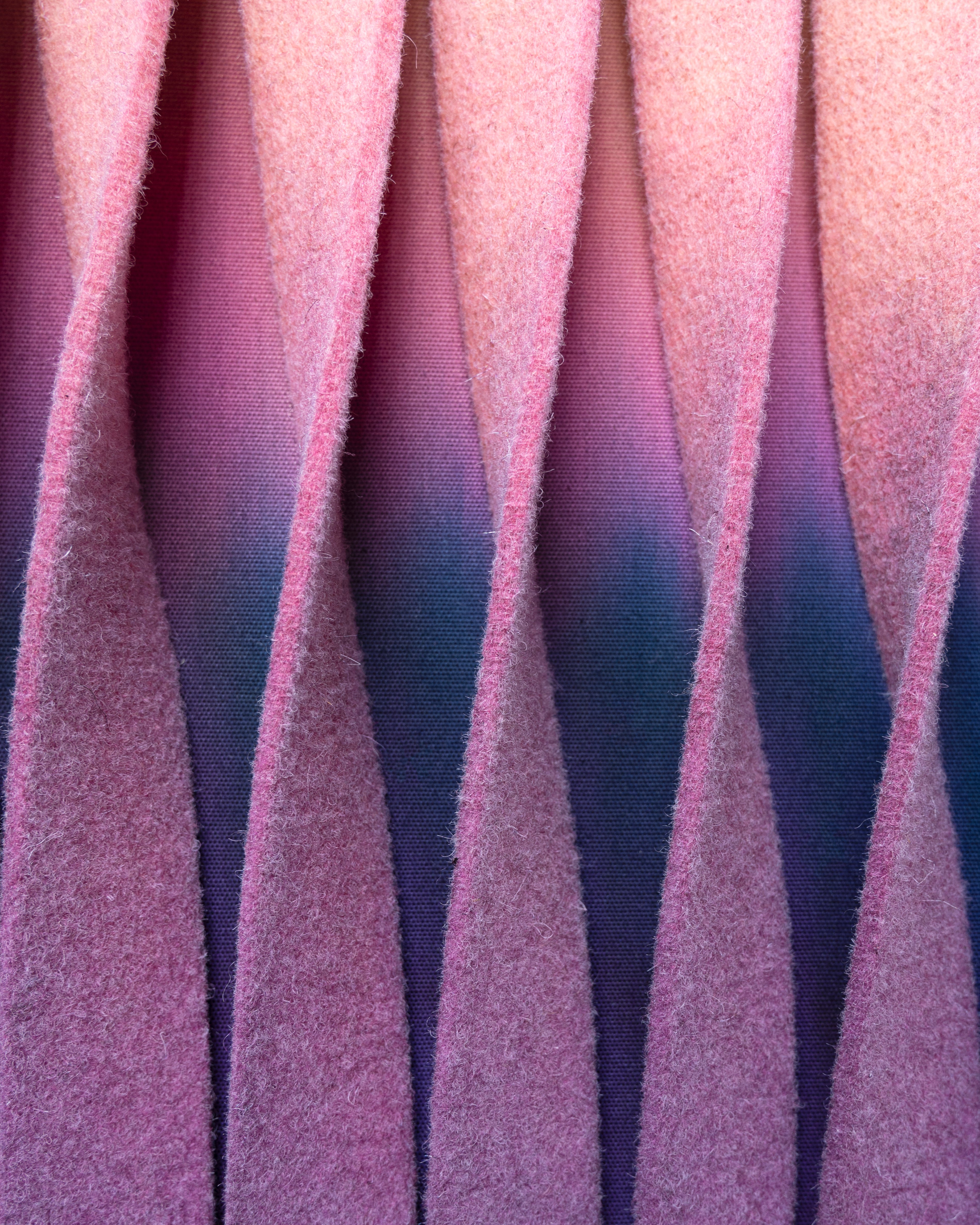 Each piece is made entirely by hand using natural fibers such as handspun wool and 100% cotton. The result is a rich interplay of movement, depth, and light. Some artworks embrace the quiet beauty of undyed natural tones, while others are hand-dyed in subtle color gradients inspired by earth, stone, and sky.